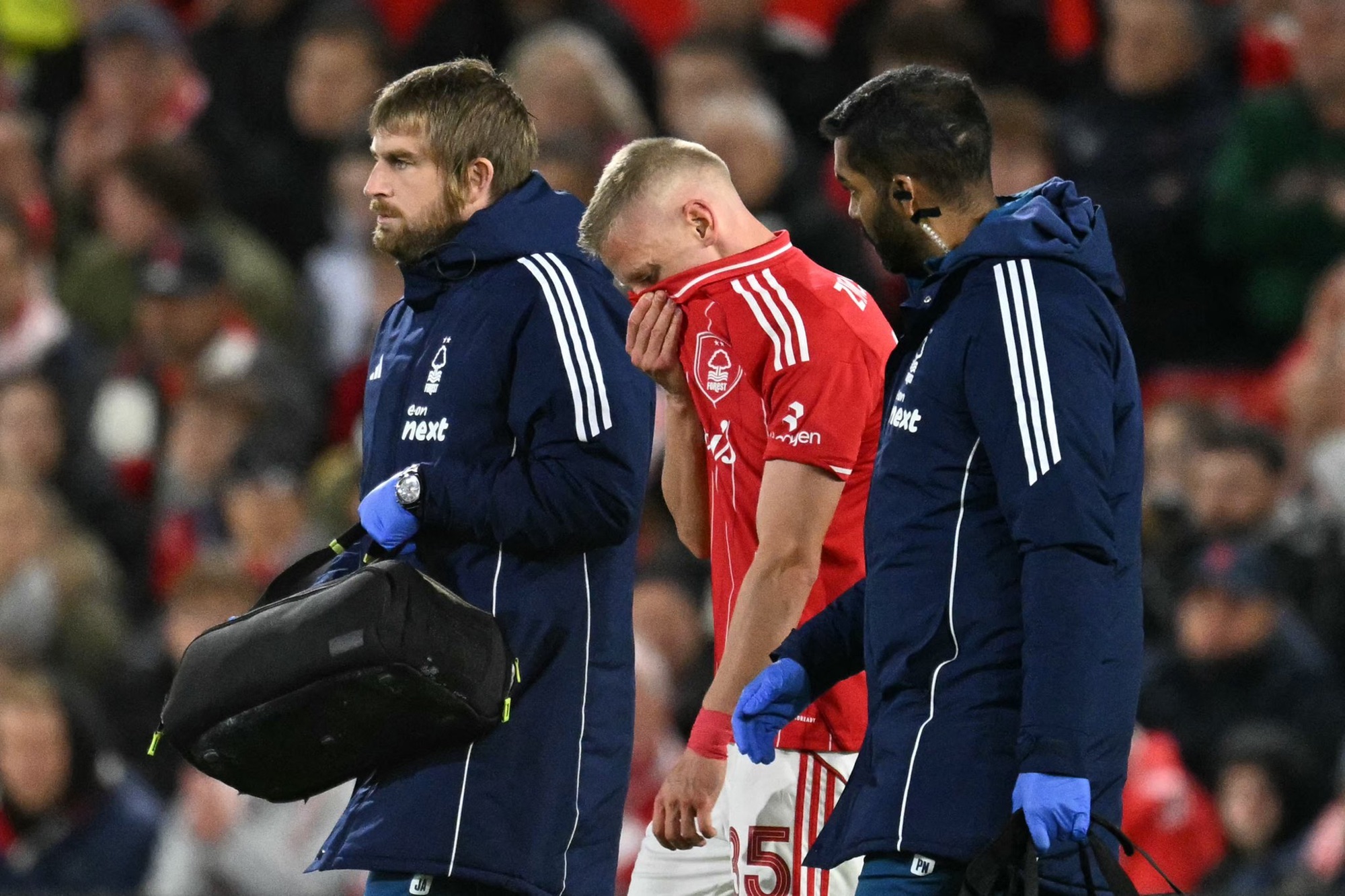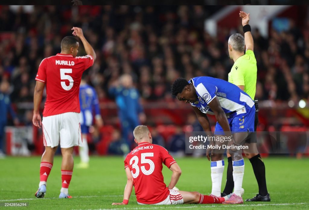 The Ukrainian defender, who had been one of Forest’s standout performers on the night, went down clutching his leg midway through the second half. Despite attempts from the medical team to help him continue, Zinchenko was unable to carry on and left the pitch visibly emotional, covering his face as he walked to the bench.