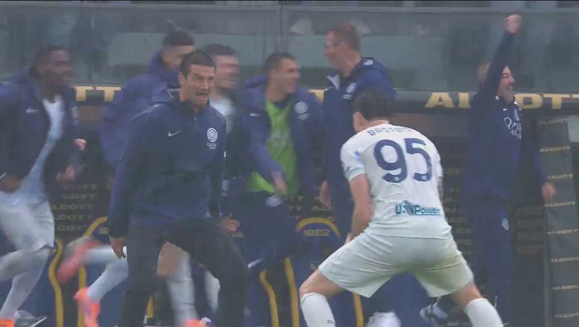 Inter’s assistant coach Christian Chivu went absolutely wild after Inter’s winning goal — celebrating like it was their first goal in club history.