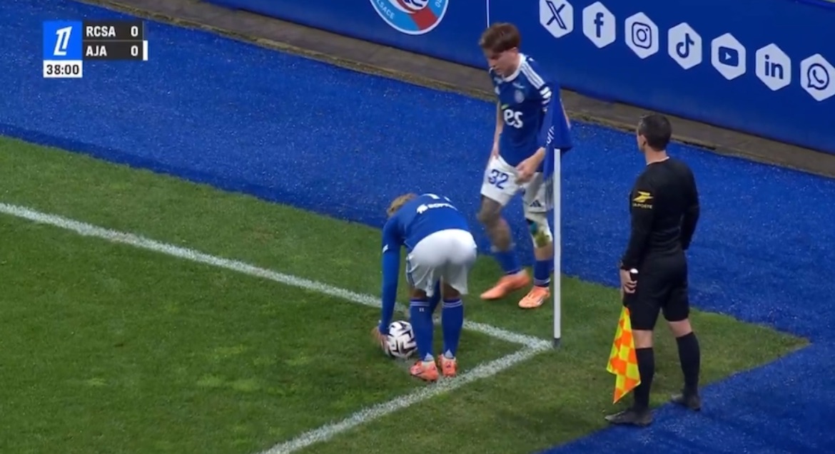 The scene started when Strasbourg were trying to hold on to their narrow lead. Two players began arguing near the sideline, drawing the referee’s attention and slowing down the game. Fans thought it was a genuine disagreement — until play resumed.